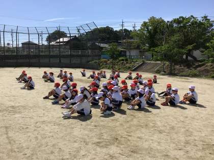 今日は、1年生が体力テストでした。外から始めるクラスと、中から始めるクラスに分かれて測定していました。