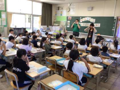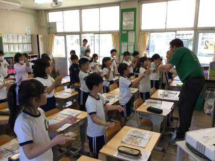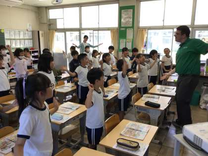 英語の曲に合わせて、歌ったり、踊ったりしました。