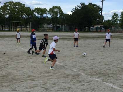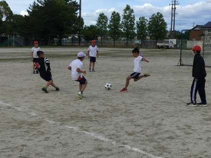 4年 ドキドキ!初めてのクラブ!(サッカー) 公開日 2024/05/20 更新日 2024/05/20 各学年から 5・6年生と一緒に試合形式で活動していました。4年生がゴールを決める場面もあり、盛り上がっていました。 4年
