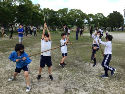 4年 ドキドキ!初めてのクラブ!(棒の手) 公開日 2024/05/20 更新日 2024/05/20 各学年から 地域で棒の手に触れている子、初めて取り組む子、それぞれの立場で一生懸命声を出しながら活動していました。 4年