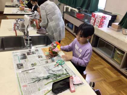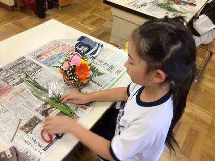 早速お花を活けていました。バランスや見せ方など、考えながら作品作りに没頭していました。
