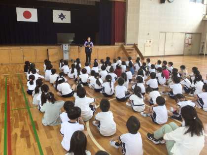 1年生の学年集会を行いました。はじめに各担任のすきなものを紹介しました。子どもたちは反応よく、楽しみながら聞いてくれました。次に1年生の学年目標「ミッケ!」について話しました。新しいことをたくさん見つけよう。お友達のよいところをたくさん見つけよう。小学校の楽しいところをたくさん見つけよう。この3つの目標を達成できるように頑張っていこうと気持ちを高めました。子どもたちは目を合わせてうなずきながら聞いていました。入学して1ヶ月半が過ぎました。子どもたちがさらに成長できるよう、見守っていきます。