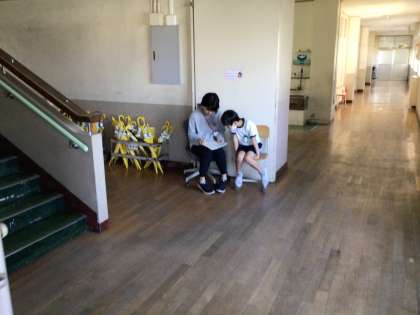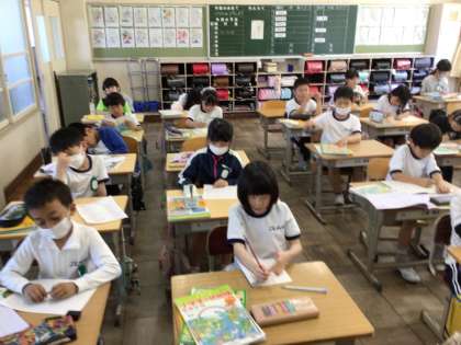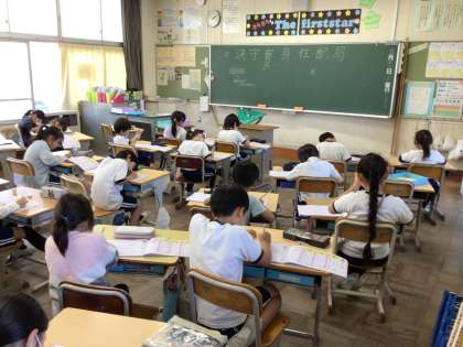 一人一人、教育相談をしています。それ以外の子どもたちは静かに自習をしています。