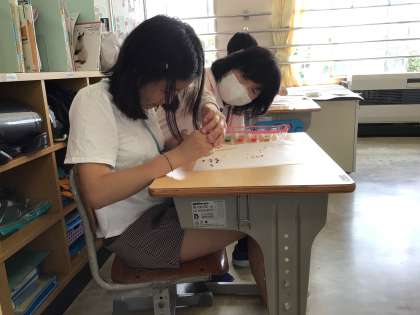 スポイトの上のところを上手につまんで、色水遊びを楽しみました。