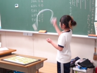 ?このクラスでは、手作りけん玉を使って活動していました。