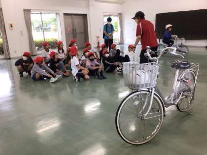 あいにくの雨となりましたが、1組、2組が交通安全学習センターで交通安全教室を行いました。自転車に乗る時の注意や、車に巻き込まれる危険性について学びました。自分や周りの人の命を守るためにも、これからの生活に生かしていきたいです。