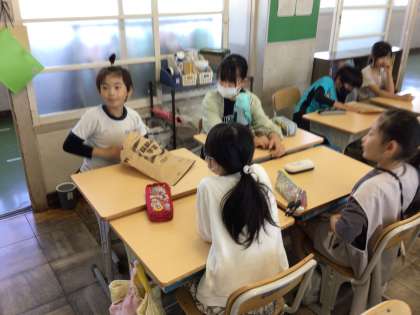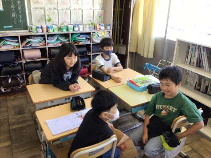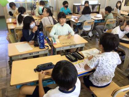 ステップタイムで行っている「気持ちあてゲーム」の様子です。今日は今までとちょっと違うお題にしてみました。お題は「スモモもモモもモモのうち」です。早口言葉で有名ですが、どのように言うか工夫しながら伝え合っていました。