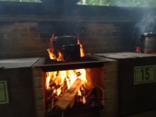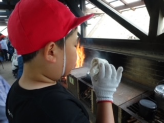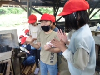 火種は大切に扱います。思ったより早く火を起こした班がありました。タイミングが合うと、一気に点火するようです。