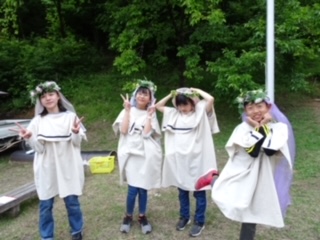 もうすぐ始まるファイヤーの説明を聞いています。女神とクラスの代表者です。六所の女神は、お茶目さんのようです。