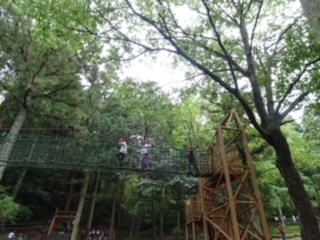 吊り橋を渡ってみました。網があるから不安はありませんが、揺れる感じが怖くなる人もいるはず。