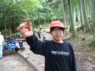 サワガニを見つけた子もいました。生き物は、大事にしたいです。この後、元暮らしていた場所に戻していました。