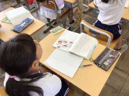 2組では物語文「走れ」の授業が進められていました。登場人物の様子が変化する山場を見つけるために、場面ごとに読み進めています。何が、なぜ、どのように変化したのか読み取れたでしょうか。ぜひご家庭で聞いてみてください。