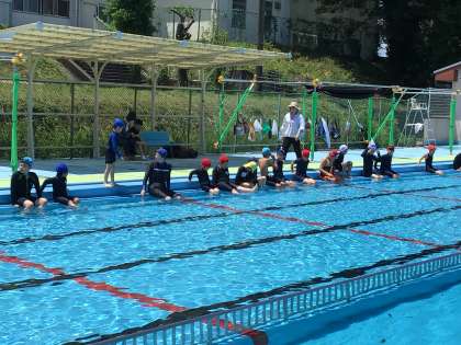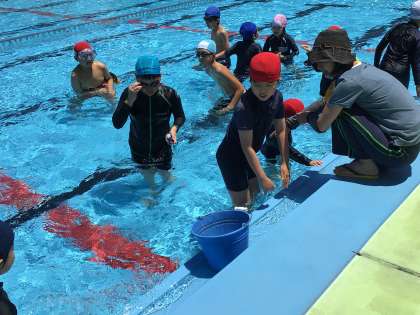 ちょっと寒かったですが みんなで水慣れをして石拾いをしました。