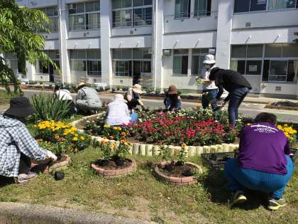 ボランティの方がご協力くださり、きれいに植えることができました。