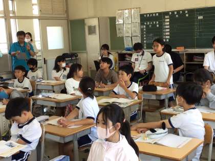 水泳後、しかも給食を食べた後の時間だったにもかかわらず、たくさんの子が発表していました。