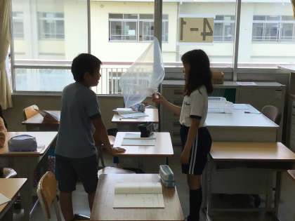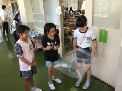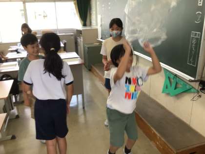 1組では大きな袋に空気を一生懸命入れていました。閉じ込めた空気について考えていくようです。袋に空気を入れるだけでもてんやわんやしていましたが、みんなで協力して準備していました。授業参観につながる授業です。どんなことをしているか、話題にしていただけるとありがたいです。