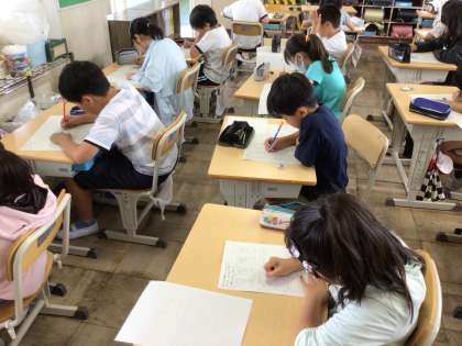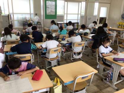 今回の月例テストは、漢字と算数の「折れ線グラフ」「1桁で割る割り算の筆算」です。なんだか自信ある表情の子が多いような気がします。果たして結果はどうなるでしょうか。
