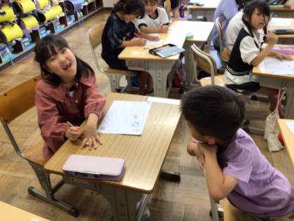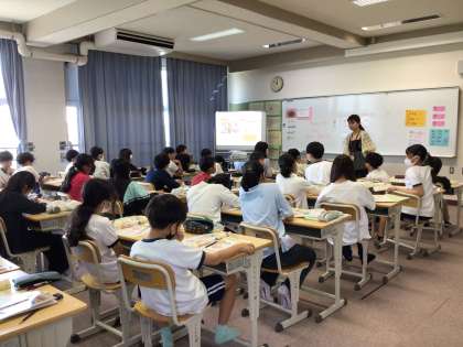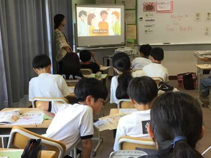 外国語の授業やクラスでの子どもたちの様子を見ていただきました。
