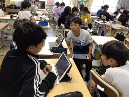 国語で「風切るつばさ」の学習をしました。クルルが飛べなくなったときの気持ちについて考えました。「このまま生きていてもいいことはない」「群れに自分は必要ない」など自分の存在を否定し、絶望するクルルの気持ちを想像しました。