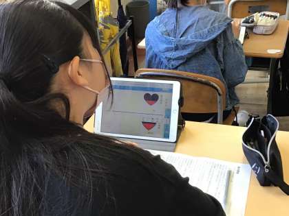 6年生のあるクラスでは、道徳の時間にハートを使って気持ちを表す技を使って考えていました。