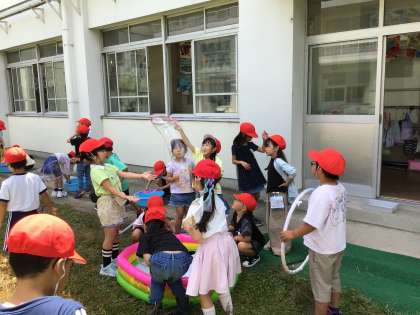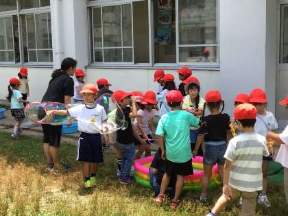 たくさんのしゃぼんだまやなが〜いシャボン玉を作っていました。