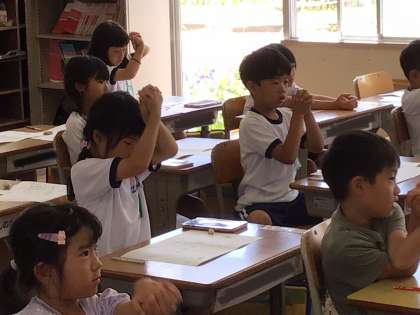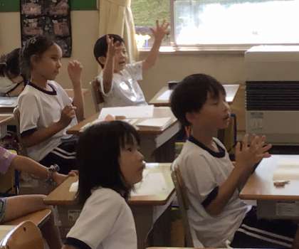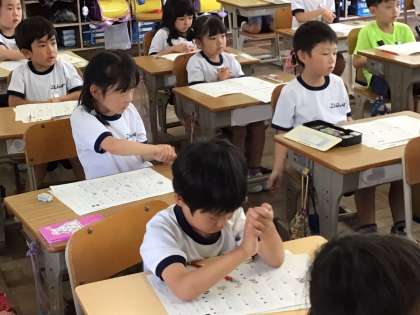 そして、その名前を声に出しながら拍手やぎゅっと握ることで、文字と音が結びつくことを学んでいます。日本語の大事な学びです。