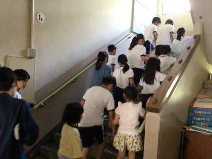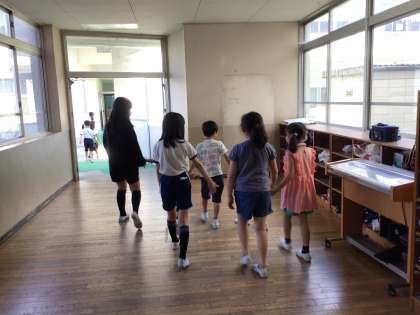 まずは、5年生が1年生を呼びにきていました。手をつないでいるすがたもみえました。