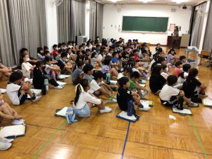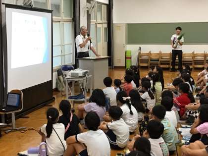 地域のお米づくりのプロの農家の方を招いて、米作りのお話を聞きました。米作りの仕方や大変さを聞きました。