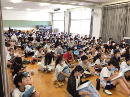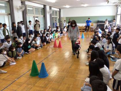 盲導犬とともに生活をしている講師の方をお招きし、盲導犬や視覚障がいについて学習しました。盲導犬がどのようにして生活をサポートしているのか、目が見えない中でどのように生活を送っているのか実際の生活の様子をお話ししていただきながら学びを深めました。