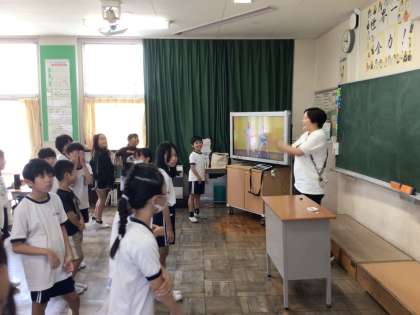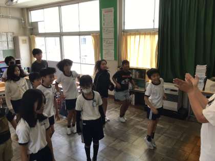 2組から手拍子が聞こえてきました。のぞいてみると、運動会のダンスを練習していました。なかなか揃わない左右の動きを繰り返し練習しています。まだまだ時間はありますが、しっかり揃うか楽しみです。