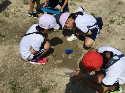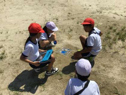 理科では「雨水の行方」について考えています。3組では、いつの間にか無くなっている水たまりから、土にしみこんだり、流れていったりするのではないかと予想し、検証していました。どんなことが分かったか話題にしていただけるとありがたいです。