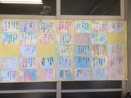 5年生の教室前に、すてきな作品がありました。台紙もオリジナルですよ。