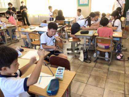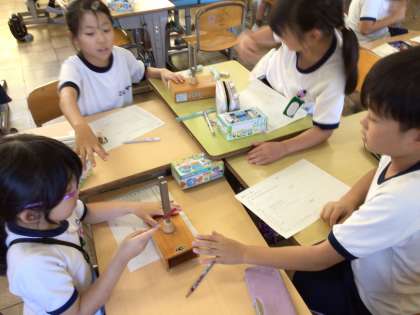 3年生は、音楽や理科の学習をしているクラスもありました。リズムあそびを工夫したり、音の大きさの違いで振るえ方がどう違うか調べたりしていました。