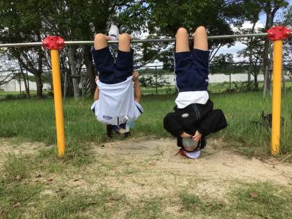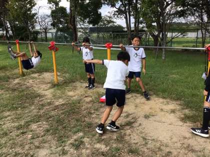 鉄棒コーナーでもたくさんの子が技に挑戦していました。