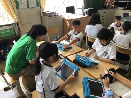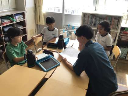 総合の授業では、自分たちが確かめたいことを検証しようと検証計画を立てています。しかし、台風や雷などの気象や、地震や洪水などの災害について考えているので、難しい検証になっているグループがたくさんありました。今日はそんな困っている4年生のために、豊田高専の生徒さんがアドバイスに来てくれました。どんなアドバイスがもらえたか、ぜひ話題にしてみてください。