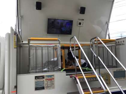 緊急地震速報の音が流れて地震の揺れを体験しました。