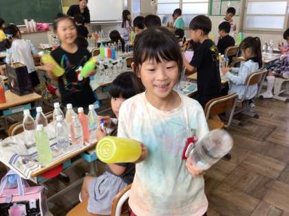 お気に入りのジュースができたうれしさを伝えたい子どもたちの様子を紹介します。