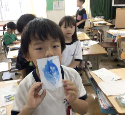 このクラスは、葉っぱに色をつけて型押しをしていました。