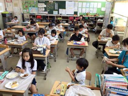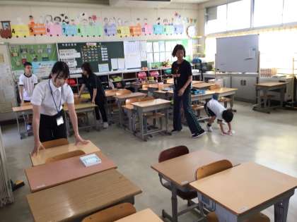 4時間目の授業、給食、そうじを一緒にしました。