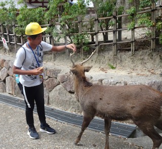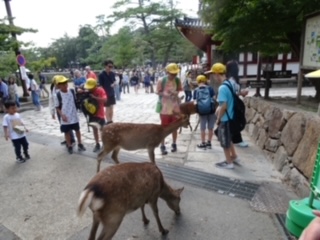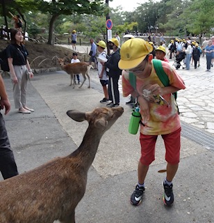楽しみにしていた鹿せんべいを鹿にあげる時間がやってきました。鹿は、食べたくて仕方ありません。せんべいに近寄ってきます。
