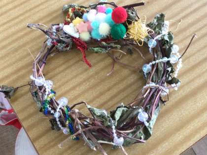 アサガオのつるでリース作りもしていました。