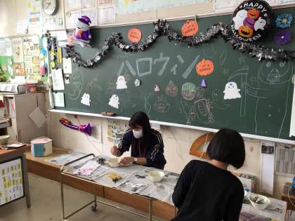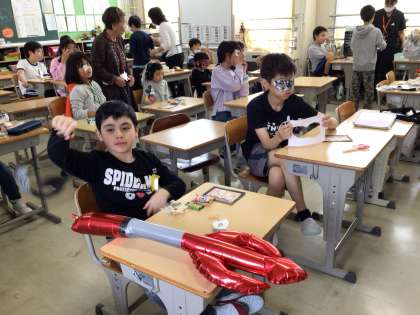 お面を作って仮装しました。 スペシャルゲストも来てくれました。