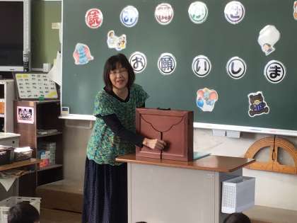 今日読んでいただいたのは「たべられたやまんば」の紙芝居でした。いつもの本と違って、紙芝居というだけでも子どもたちは興味津々。3枚のお札を使ってどのようにやまんばから逃げたのか、ぜひご家庭でも話題にしてみてください。ダンボの会のみなさん、いつもありがとうございます。