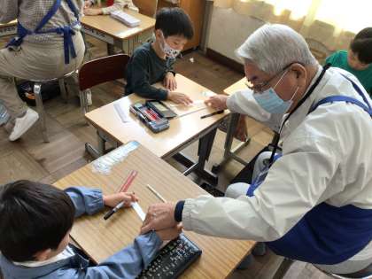 ものづくり教育プログラムよりたくさんの講師の方にお越しいただいて、紙・プラとんぼを作りました。細かい作業に悪戦苦闘しながらも、講師の方にお手伝いいただいて、なんとか完成しました。