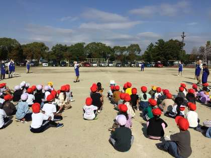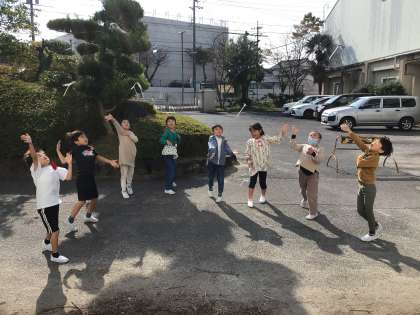 自分で作った紙・プラとんぼを飛ばしました。高く遠くに飛んで大喜びでした。最後にスーパーたけとんぼを披露していただきました。ものすごく高く飛ぶたけとんぼを見せていただいて、子どもたちはとても驚いていました。