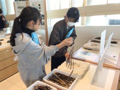 縄文式住居を建てるコーナーや、土器を探すコーナーは人気でした。
