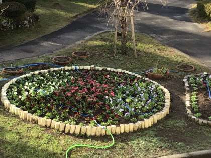 1年生の教室前の円形花壇に、花を植えました。