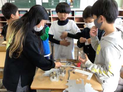 総合学習の時間に、防災に関する課題でしらべ、自分たちで検証しているところです。