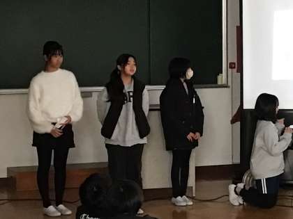 国語の学習「プレゼンテーションをしよう」のまとめとして,学年で代表グループのプレゼンテーションの発表を聞きました。学校生活を豊かにするための提案を考え発表しました。他校の事例やアンケート結果,公的機関のデータなど具体的な資料を提示し,聞き手を納得させる工夫がされていました。お子さんの考えた提案を家庭でぜひご覧ください。