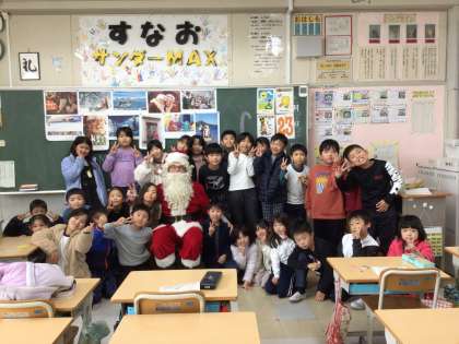 外国語の学習をしながら、本物のサンタさんと写真撮影もできました!?